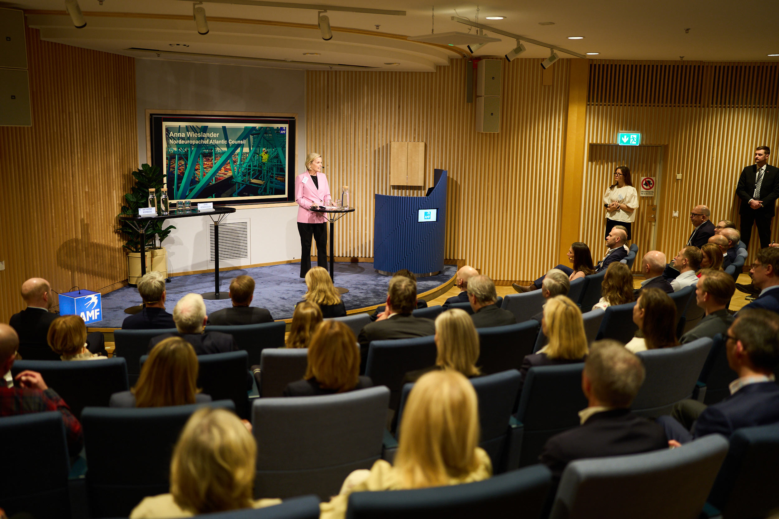 Under ett fullsatt seminarium diskuterades hur geopolitik och ekonomi i dag är tätt sammanflätade och hur detta påverkar både kapitalmarknader och ekonomiskt beslutsfattande. Samtidigt lyftes Sveriges finanssystems grundläggande motståndskraft. Robusta institutioner som har en förmåga att samverka i en mer osäker värld blir allt viktigare.